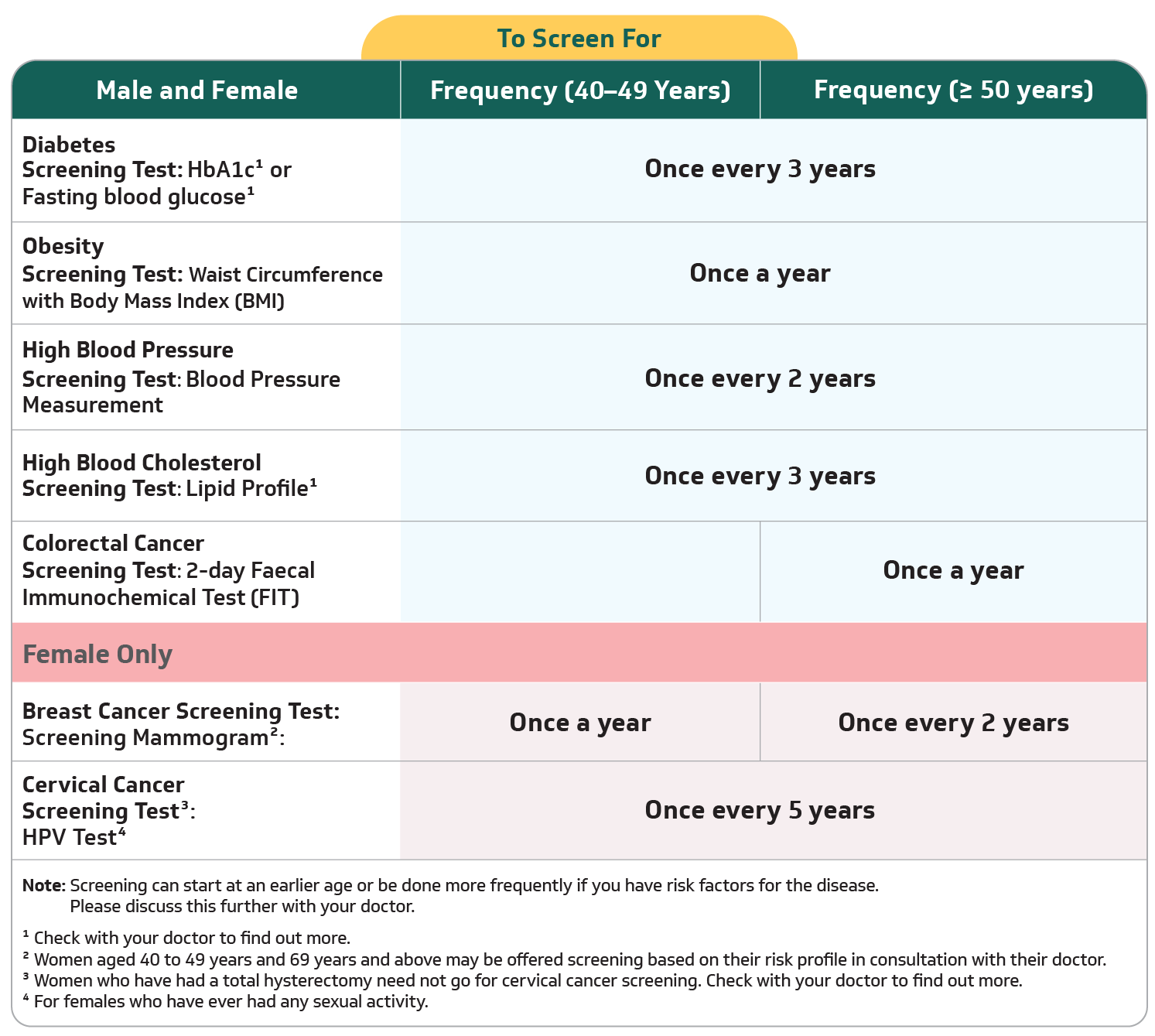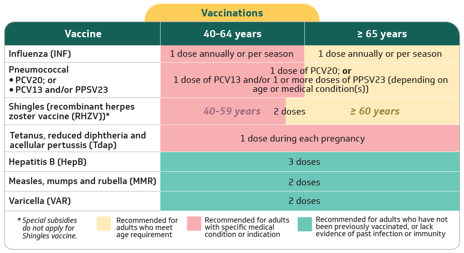 *Prevailing eligibility criteria and guidelines of Healthier SG Screening and National Adult Immunisation Schedule apply.